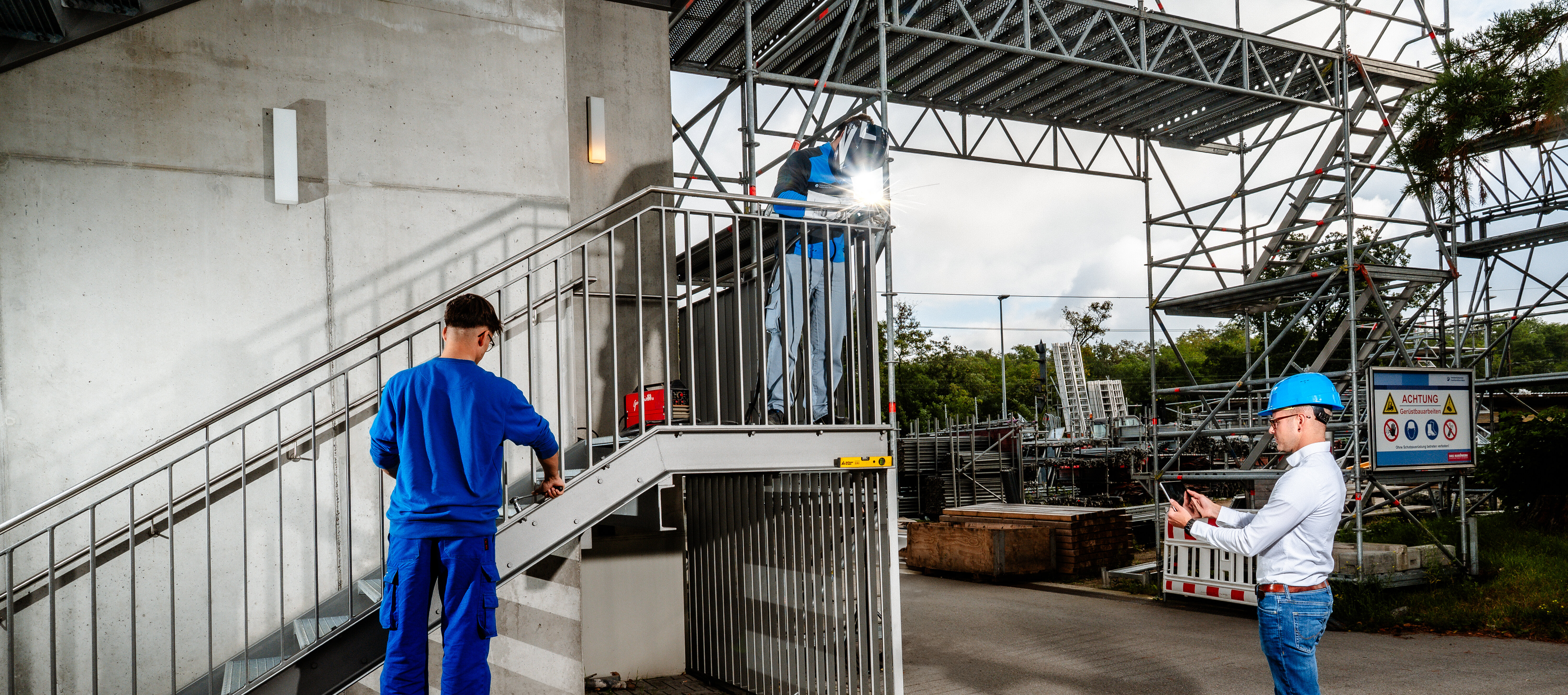 Zeitgemäß ausgestattete Werkstätten und aktuelle Fertigungstechnologien ermöglichen realitätsnahes Lernen. Kleine Lerngruppen gewährleisten intensive Betreuung. Unsere Schweißtechnische Lehranstalt ist vom Deutschen Verband für Schweißen und verwandte Verfahren (DVS) anerkannt und zertifiziert. Die überbetriebliche Lehrlingsunterweisung ergänzt die Ausbildung in allen Gewerken und sichert einheitliche Qualitätsstandards.