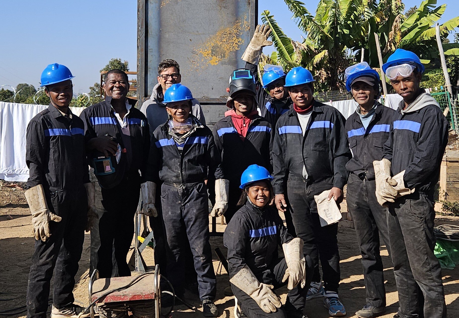 In der Hauptstadt Antananarivo führte ich eine 4-wöchige, intensive Schulung für lokale Metall-Handwerker*innen durch, um deren Fähigkeiten in der Herstellung von Maschinen zur Pflanzenkohleproduktion zu verbessern. Zuerst haben wir 5 Prototypen aus lokal verfügbaren Materialien entwickelt und gebaut: