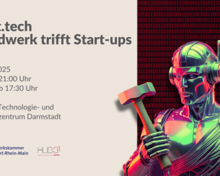 Moderne Technologien automatisieren Prozesse und steigern die Effizienz. Digitale Werkzeuge und nachhaltige Materialien eröffnen neue Geschäftsfelder und machen das Handwerk attraktiver. Start-ups profitieren von Erfahrung und handwerklichem Wissen, während Handwerksbetriebe frühzeitig Innovationen nutzen. Gemeinsam mit HUB31 Technologie- und Gründerzentrum Darmstadt und der Handwerkskammer Frankfurt-Rhein-Main fördern wir den Austausch zwischen Start-ups und Handwerk. Nutzen Sie die Chance zum Networking in innovativer Atmosphäre!