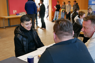 (Darmstadt, 27. Februar 2026) „Ich finde so ein Speeddating gut, weil man sich hier austauschen und Betriebe aus der Gegend kennenlernen kann“, sagt Adam, 16 Jahre alt. Er hatte gleich vier Gespräche an diesem Tag. Mit an die Gesprächstische brachte er seine beiden letzten Zeugnisse und einen Lebenslauf.