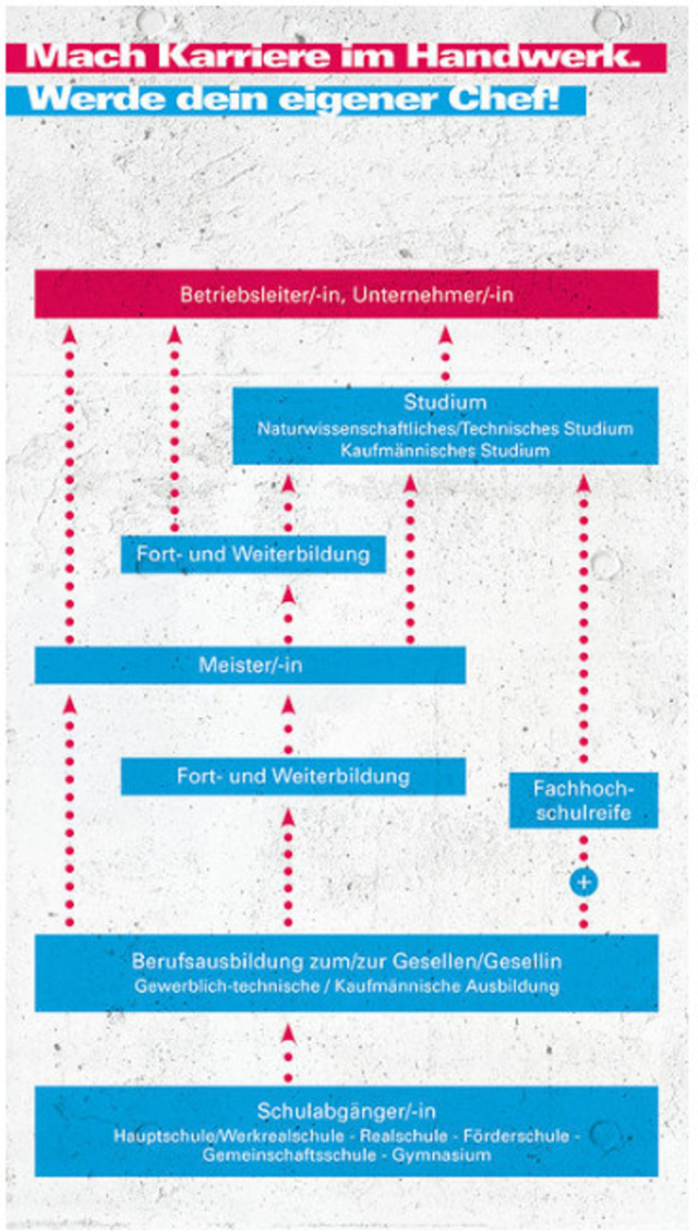 Und danach? Als Geselle/Gesellin kannst du den Meistertitel machen. Damit kannst du in einer leitenden Position arbeiten, Lehrlinge ausbilden und einen Betrieb führen. Bei zahlreichen mittelständischen Betrieben im Handwerk stehen in den nächsten Jahren Nachfolgeregelungen zur Unternehmensfortführung an. Gerade für Abiturienten/Abiturientinnen und Studienabbrecher/innen eine gute Perspektive.