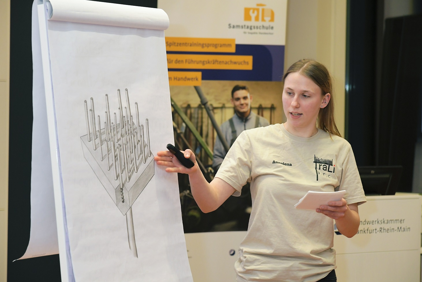 Wenn die Zeit wie in Flug vergeht und es schnurstracks zur Abschlusspräsentation geht: Die begabten Nachwuchskräfte beweisen anhand der Vorstellung ihrer Idee nicht nur ihren praxisorientierten Erfindergeist, sondern zeigen auch, was sie in den Seminaren der Samstagsschule in Sachen Kommunikation, Rhetorik und BWL gelernt haben. Die Laudatoren aus den Reihen der Kammerspitze und der Förderer zeigten sich wieder einmal beeindruckt vom Fachwissen, der Keativität und der Leistungsbereitschaft der künftigen Führungskräfte im Handwerk.